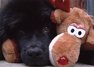 Ask your pup to sit and slip the collar/harness over his head, talking and praising as you do so. Repeat, leaving the harness or collar on for a few minutes. If your Newf shows any apprehension, repeat these steps until your pup is calm.